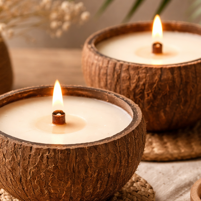 Bougies à la cire de soja 100% végétale et biodégradable associer aux parfums naturels des huiles essentielles avec une combustion longue et homogène.